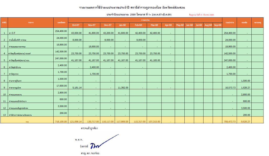 รายงานผลการใช้จ่ายงบประมาณประจำปี 2568 ไตรมาส1-2