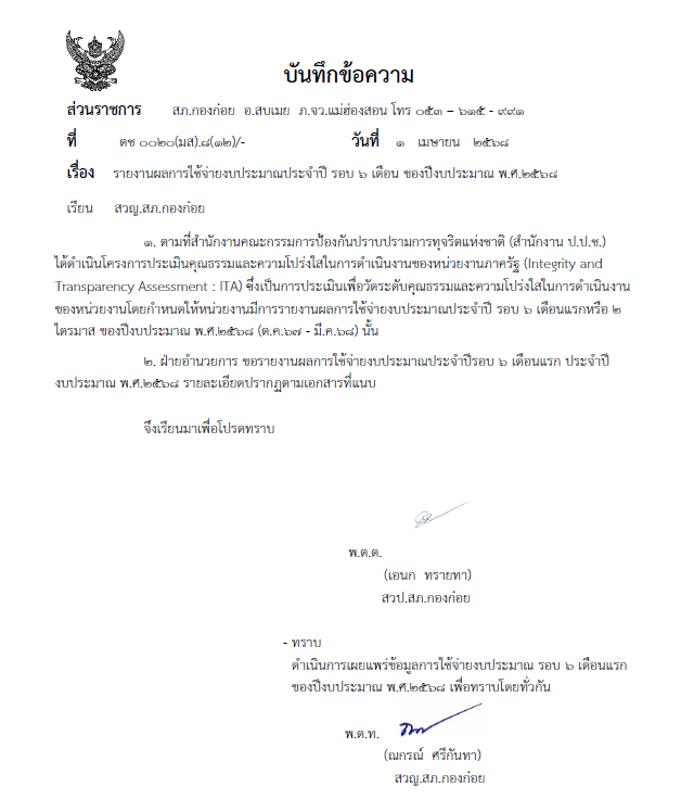 การจัดสรรงบประมาณ ประจำปี 2568 งบปกติ สภ.กองก๋อย