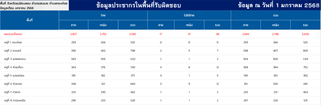 ข้อมูลประชากรในพื้นที่รับผิดชอบ ตำบลกองก๋อย
