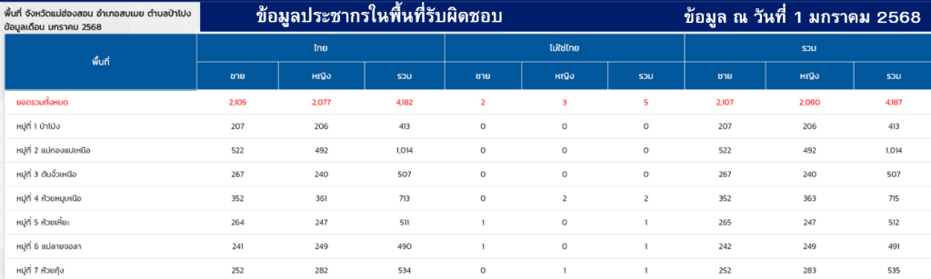 ข้อมูลประชากรในพื้นที่รับผิดชอบ ตำบล ป่าโปง