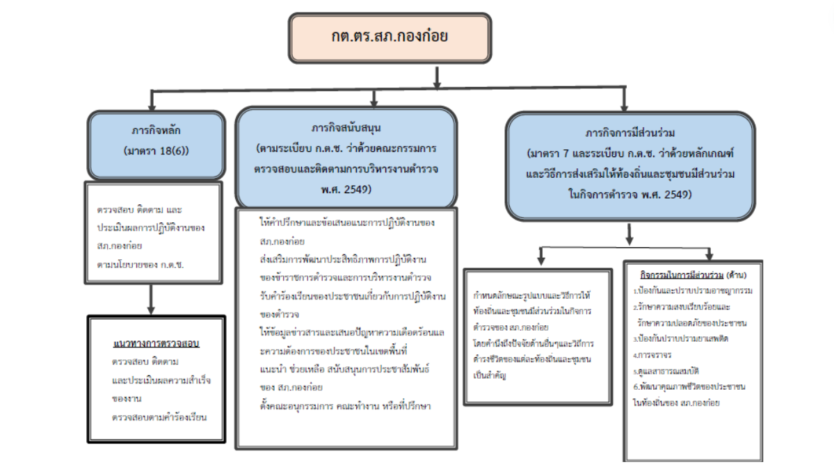 ที่มา: คู่มือการดำเนินการตามระเบียบ ก.ต.ช. ว่าด้วยคณะกรรมการตรวจสอบและติดตามการบริหารงานตำรวจ พ.ศ. 2549