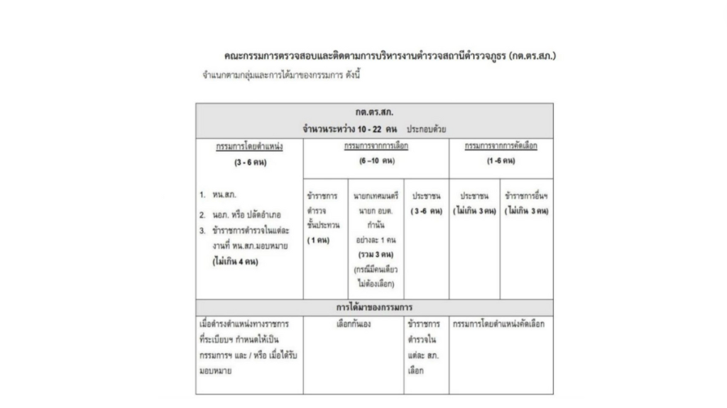 ที่มา: คู่มือการดำเนินการตามระเบียบ ก.ต.ช. ว่าด้วยคณะกรรมการตรวจสอบและติดตามการบริหารงานตำรวจ พ.ศ. 2549